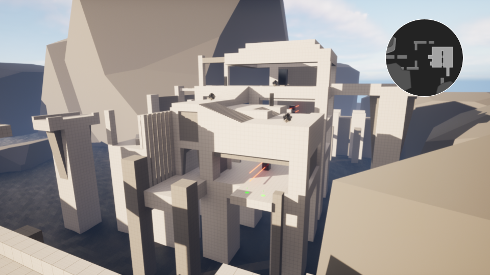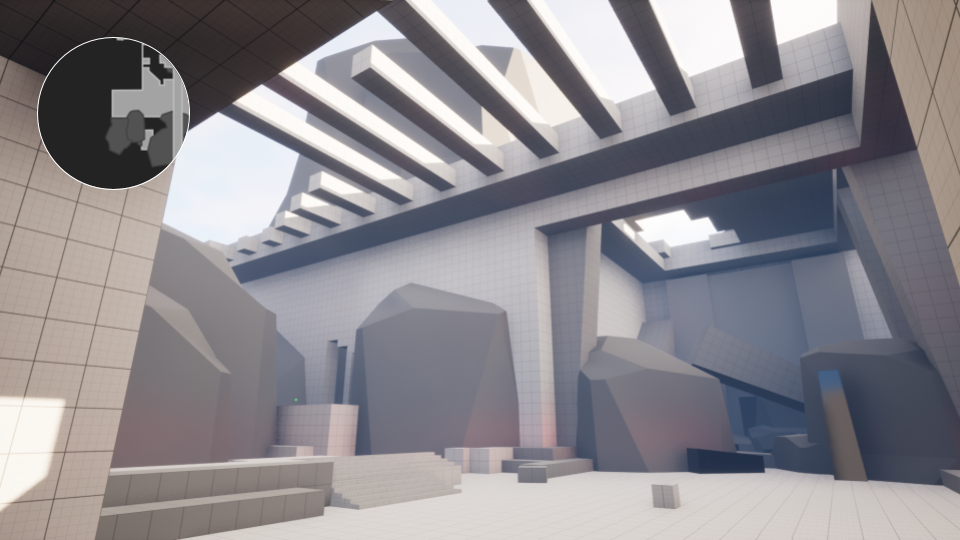 After setting the metrics I started blocking out a bunch of different action blocks to get a feel for the scale, architecture and gameplay. At the same time I made the first iterations on the player movement and enemies to test the flow of each block. I scrapped a bunch of different blocks, but quite a few of them became the foundation of the final map.
